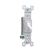 Wall switches, toggle switches, rocker switches, and dimmer switches for lighting and power control. We stock single-pole, 3-way, and 4-way switches.