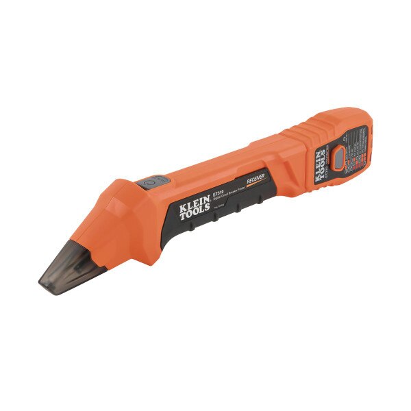 The Klein Tools ET310 Circuit Breaker Finder with Integrated GFCI Outlet Tester is a digital tool designed to quickly and accurately locate the correct circuit breaker in a panel for a connected outlet or fixture. The system includes a Transmitter that plugs into the outlet or fixture and a Receiver that scans the panel. The Receiver provides clear visual and audible signals when the correct breaker is found. The Transmitter also functions as a GFCI outlet tester to inspect wiring conditions and test GFCI devices. Built for convenience, the Transmitter docks into the Receiver for compact storage.